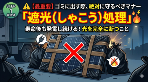 - 仕上げ:袋に入れ、外側に「太陽光パネル(遮光済み)」と明記。回収スタッフへの配慮も忘れずに。
