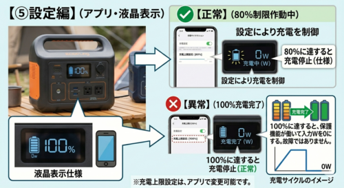 • 本体の再起動、およびアプリの充電制限設定の解除を確認